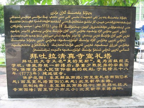 拜吐拉清真寺始建於一七七三年,當時由乾隆皇帝親自撥銀一萬兩,