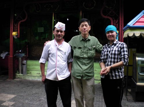 中午的羊肉太好吃了,晚上請三位師傅再去吃烤羊串.