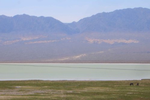 接著路過鹽湖,鹽湖被譽為是“中國死海”。新疆鹽湖與中東的死海,