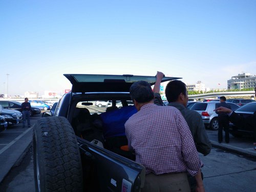 朋友已經在機場等候多時了。看到停車場裏新疆朋友的四輛