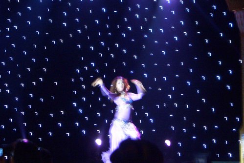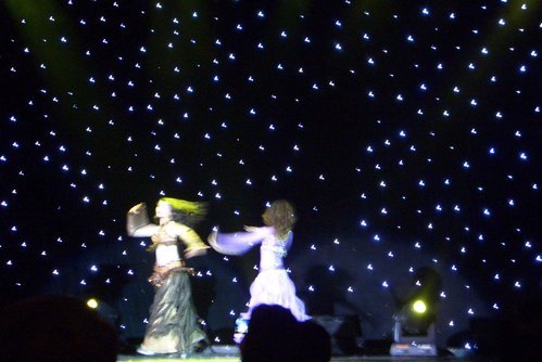 昏暗中2位阿拉伯女子若隱若現。隨著節奏的奔騰,扭動的腰肢