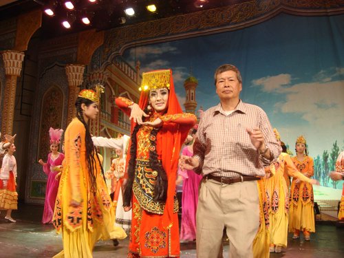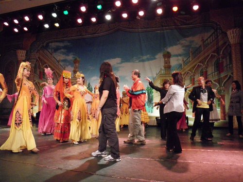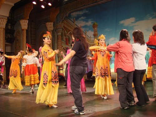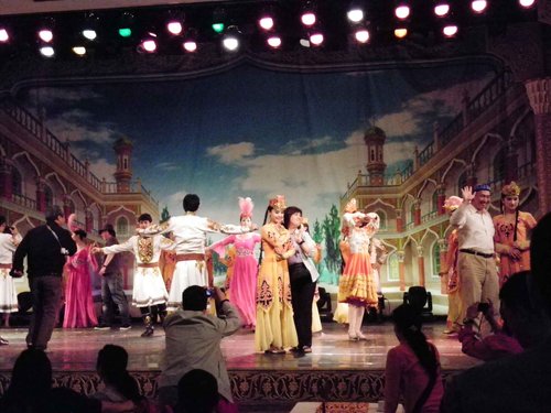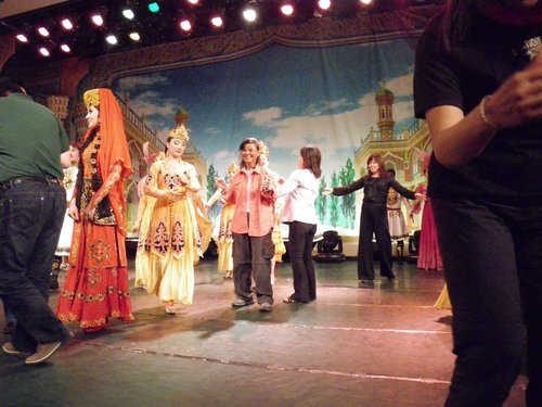 最後一個節目是邀請觀眾到舞臺上跟演員們學跳新疆舞.