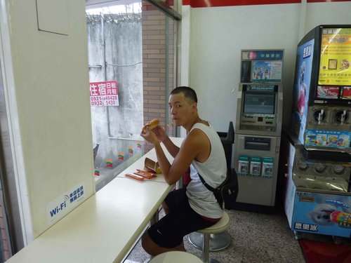 才騎到和平兒子已經肚子餓了,還好到處都有小七可買東西吃.