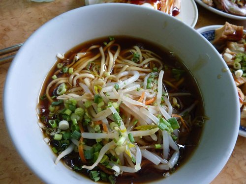 麵條滑細,上面鋪滿汆燙的豆芽菜,夏天沒食慾時最對味。