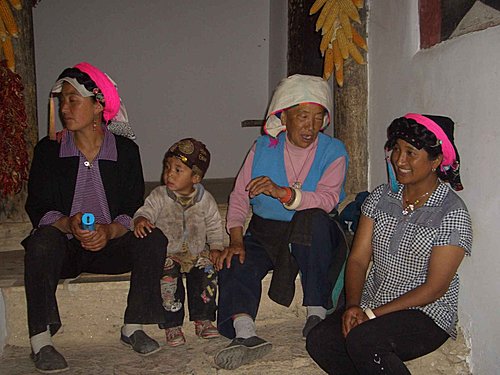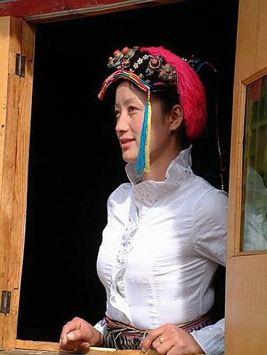 婦女頭戴“巴惹”即頭巾,姑娘的頭巾均有繡花,邊角垂吊花穗、梳辮。