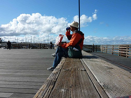回青年旅社餐廳午餐,順便研究舊金山自助旅遊路線。