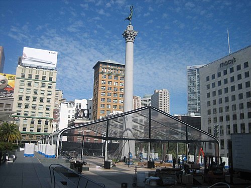 聯合廣場在早期是美國內戰時聯邦政府擁護者聚集的場所,現在則是舊金山首屈一指的黃金商業區,四周聚集各大知名百貨公司和名牌精品店。廣場上有座約100年歷史、高達30公尺的青銅雕像,是為了紀念1898年美軍上將杜威在馬尼拉灣打敗西班牙所設立。這裡的開闊空地是舉辦畫展、書展等活動的理想場所,也是市民及觀光客曬太陽、閒坐看人的好去處。