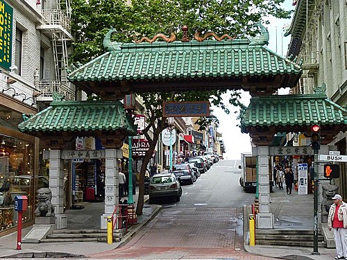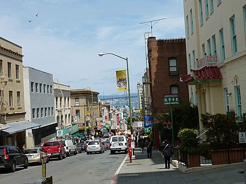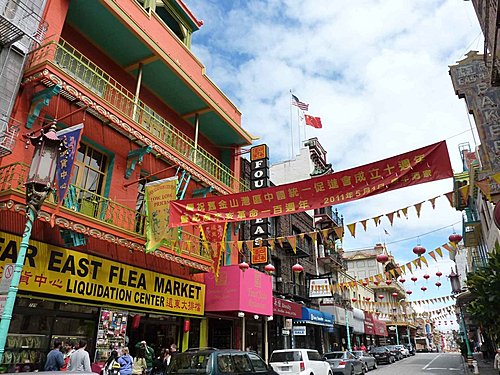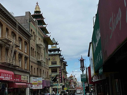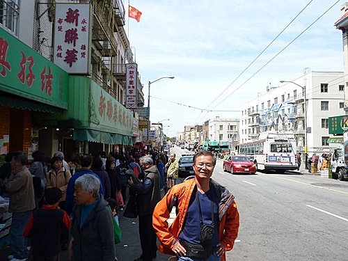 十九世紀末,中國移民來到加州,有的是因淘金熱來此,有的是協助修建太平洋鐵路工程,雖然功勞很大,卻被視為「次等公民」限制在特定區域,與義裔移民、黑人、窮白人、水手一起居住,以免與其它地方人士混淆,就這樣發展成為具有特色且著名的唐人街,舊金山中國城(China Town)就以這樣的風貌名聞遐邇。中國城佔地共約16條街口,其實,不只是華人,甚至是老外,對於華人世界的食、衣、住、行,也都充滿好奇。因此,中國城喧騰、熱鬧的景況就可以想像了。