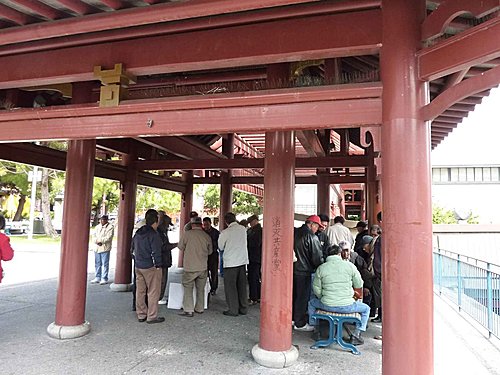 中國城裡的一個小公園裡,擠滿離鄉背井的華人,