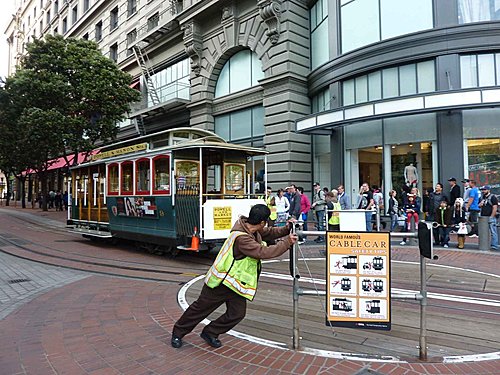 Cable Car纜車是循著地上的軌道走,因為地面下有鋪設纜線,藉由纜車博物館內的纜車絞盤來牽拉目前行駛於路面上的纜車。所以纜車只可直行,無法轉彎。