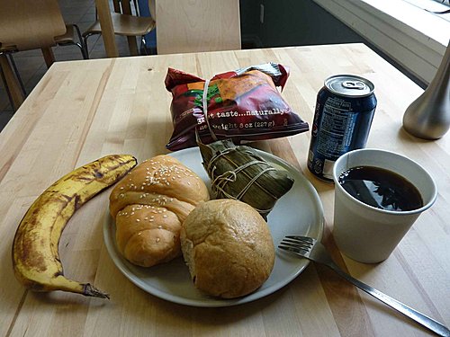 看到粽子,想到過幾天就是端午節了,因此買了2個當午餐.