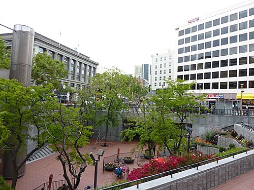 等了片刻,車子也不見蹤影。旁邊有人詢問工作人員,仔細一聽原來今天Cable Car線路維修停開。唉!連想偷懶都不成,那今天就當個刻苦耐勞的背包客好了。首先漫步到 聯合廣場 Union Square。