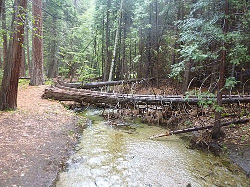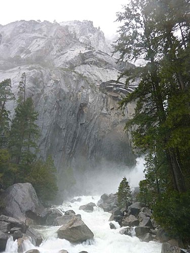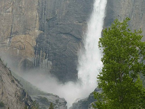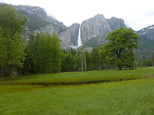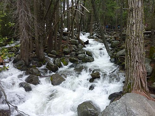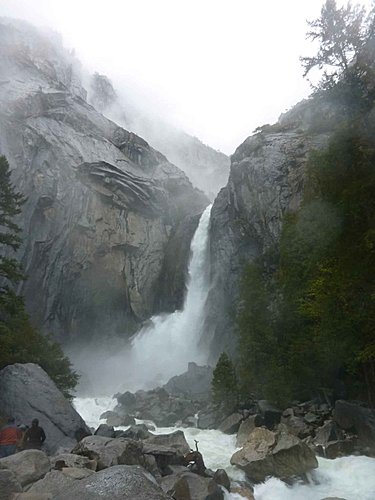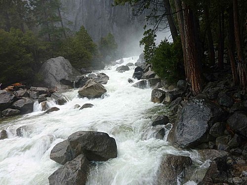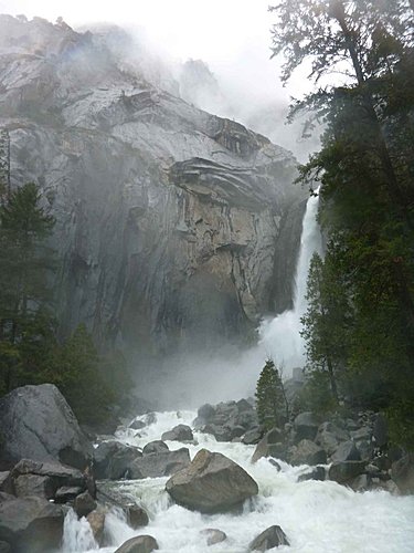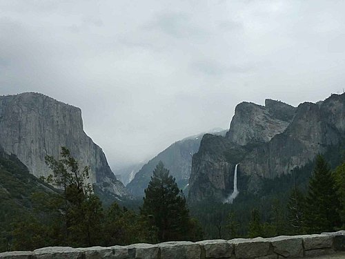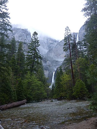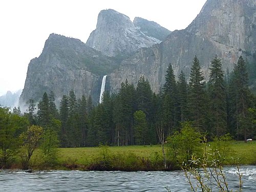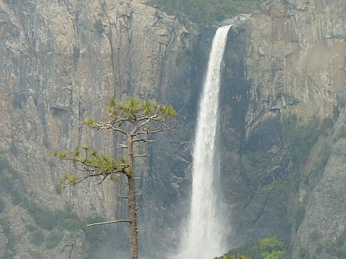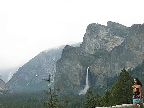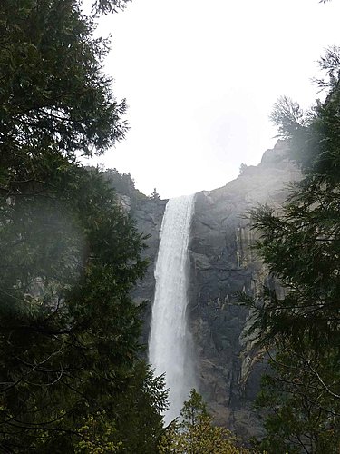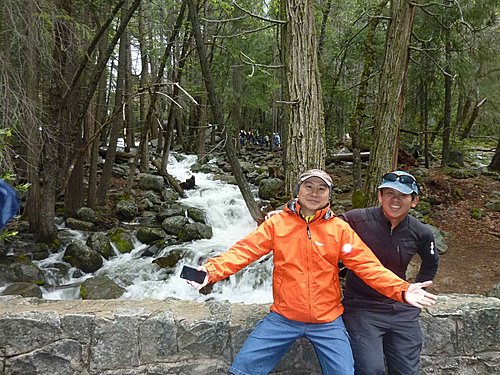 Bridalveil Fall,是一個全年有水的瀑布,氣勢澎湃,人可以走到瀑布下方,但是強烈的水氣會讓你無法久留,連照相都不行(鏡頭會濕,而且霧朦朦的一片)。倒是瀑布所形成的溪流,風景秀麗,美麗的不得了。