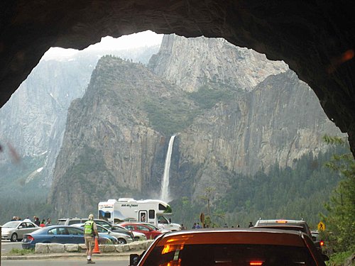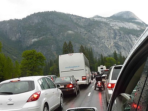 今天不是Lucky Day, 還未到冰河岬就已經交通管制,因為連續3日長假,來旅遊的人太多了,等了10幾分鐘車潮動也不動,Danny 建議直接往前到YOSEMITE VALLEY.