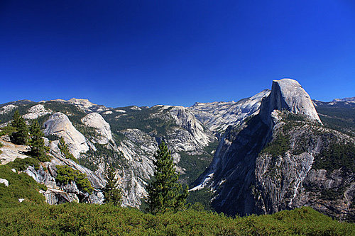 冰河岬(glacier point)是展望整個優勝美地的好地點,可以俯瞰整個優勝美地山谷,也可看到對面的一整個山巒,這裡的景色皆是由於200萬年前冰河作用所遺留下來的景色,不論是著名的半圓頂(Half Dome),或是酋長岩(El Capitan Rock).那如果你是健腳級的也可以從優勝美地山谷走上來,或是搭free shuttle到這再從這走回優勝美地山谷,單趟需花兩個小時以上。