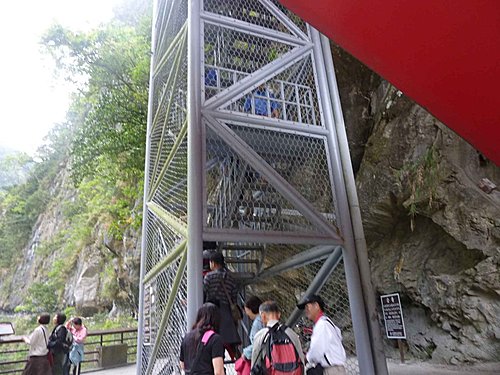 步道修築於峭壁之上,仰望可見峽谷之峻,俯視可見水與石的依戀,