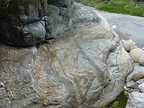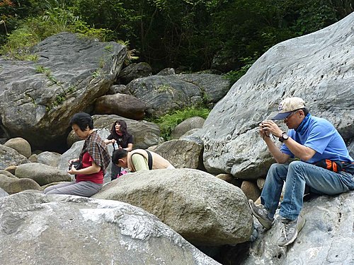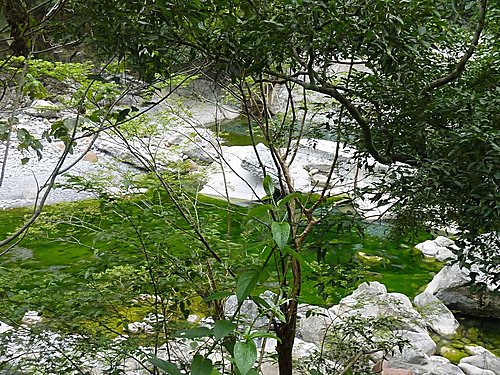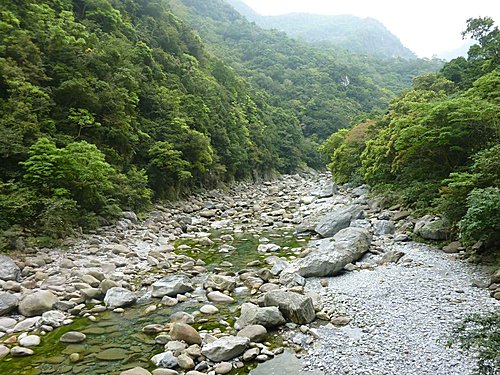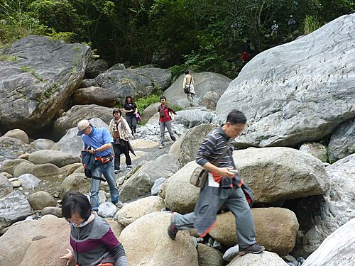 溪床上盡是鋪滿大大小小的壘石,其中以大理石與片麻岩最多,