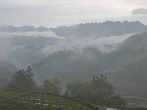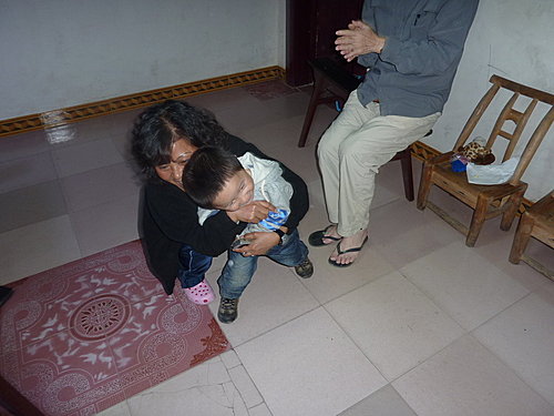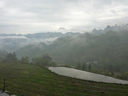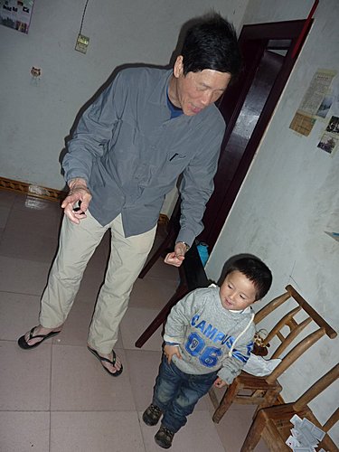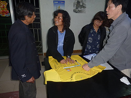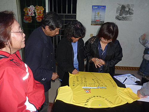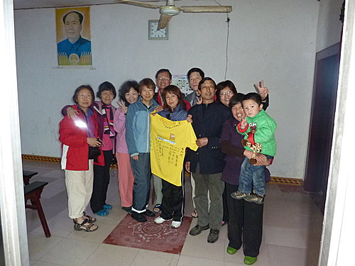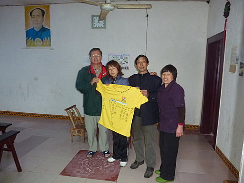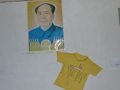 今天下午要搭14:20分至鳳凰的直達大巴,早上本來還想到小印家附近的景點走走,但一早卻開始下起大雨,看來我們運氣還不錯,如果這場雨來早點我們就慘了,今早就利用時間大家在我帶來準備送小印的T-shirt 上留言,感謝小印全家這幾天的照顧,印爸非常高興拿釘子把這件T-shirt釘在大廳毛主席的相片旁,各位來張家界住小印家一定會看到的。