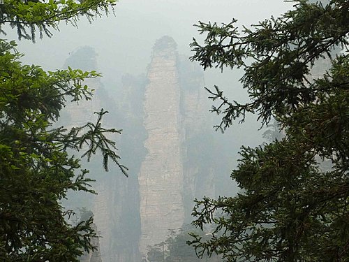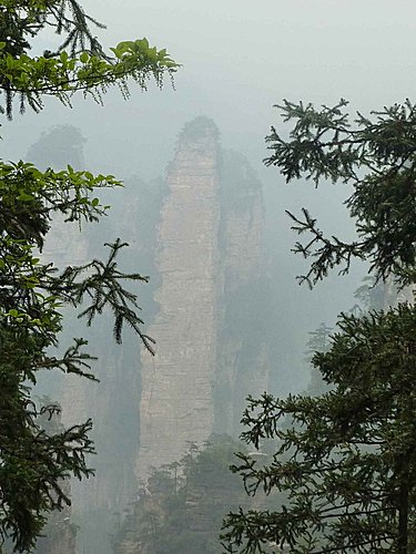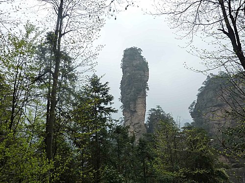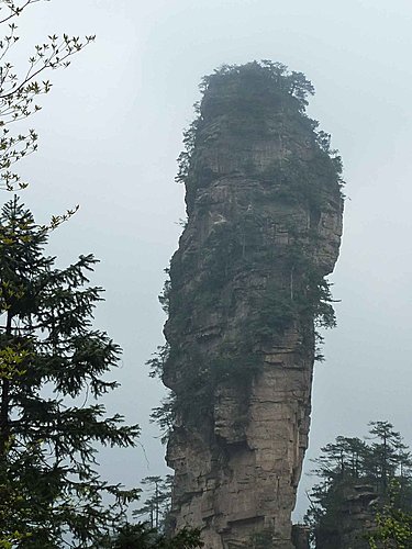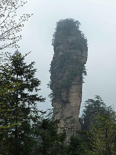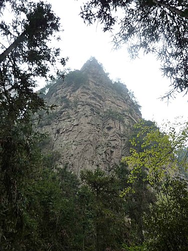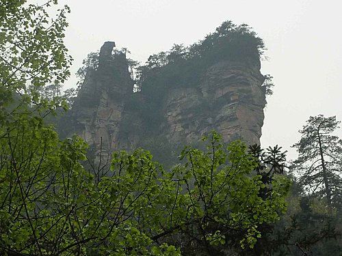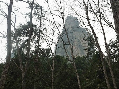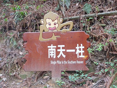 南天一柱高200多米的孤立石峰。它與一般的山峰大不相同,一般的山峰是下面粗、上面細,而它是上面粗、下面細,山風吹來,這根石柱好像搖搖欲墜,驚心動魄之餘,仿佛耳邊還能隱隱約約聽到億萬年膠地殼運動時發出的轟隆隆的巨響...