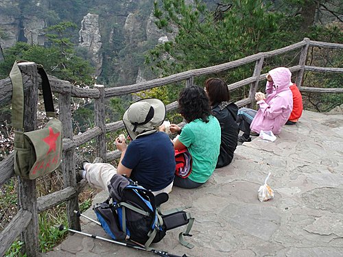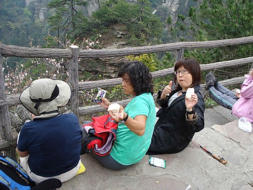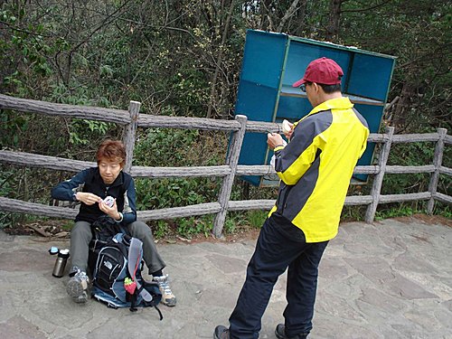 終於爬到黃石寨山頂,中午就在這山頂上享受五星級的午餐。