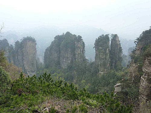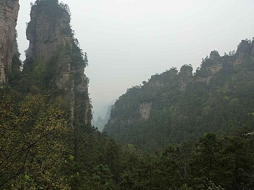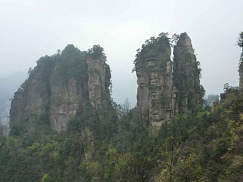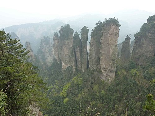 張家界國家森林公園境內峰密岩險,谷深澗幽,水秀林綠,雲繚霧繞。集雄、奇、幽、野、秀於一體,彙峰、穀、壑、林、水一色。有三千多座奇峰異石,似人似物,神形兼備,或粗獷,或細密,或奇絕,或詭秘,渾樸中略帶狂狷,威猛中又帶妖媚,危岩絕壁,雍容大氣。