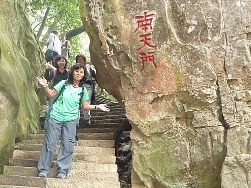 因此而得名。此處是江澤民登上黃石寨唯一留影的地方,