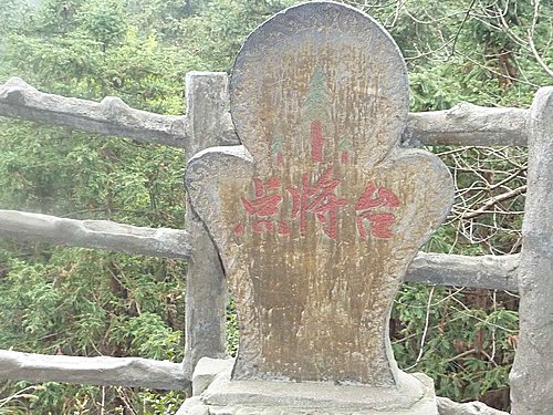 相傳漢留侯張良當年為了尋找師傅的蹤跡,來到此地隱居,卻遭到大權在握、專橫一世的呂后的猜忌。為了對付呂后的大軍圍攻,張良在此日夜操練人馬,以防不測。據說,這裏就是張良當年登臺“點將”的地方。
