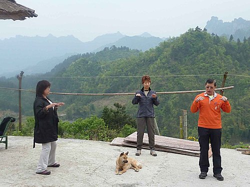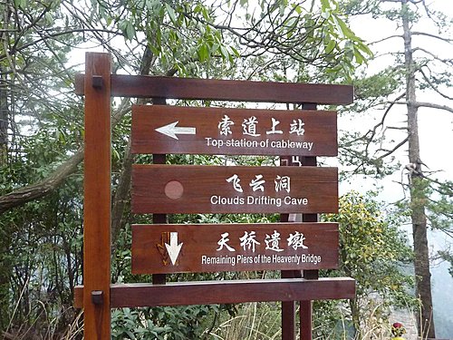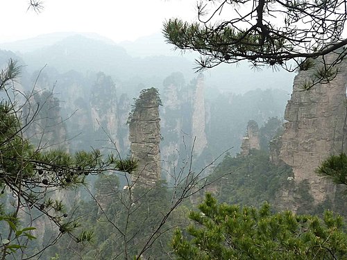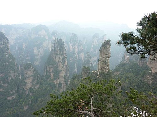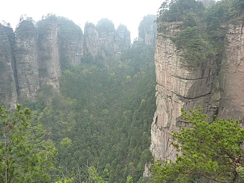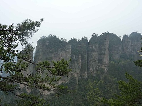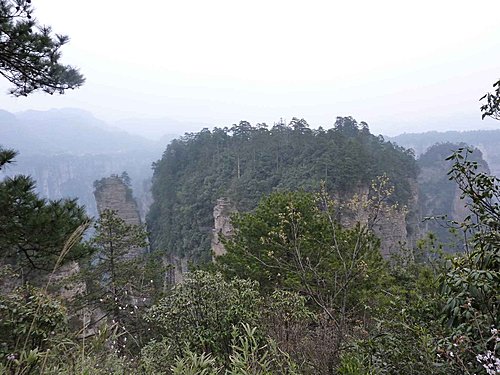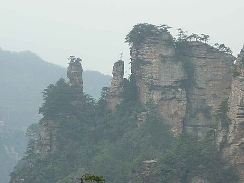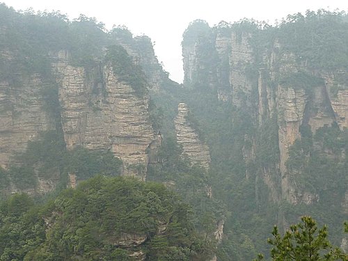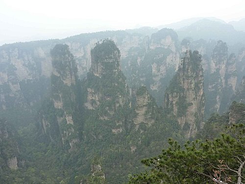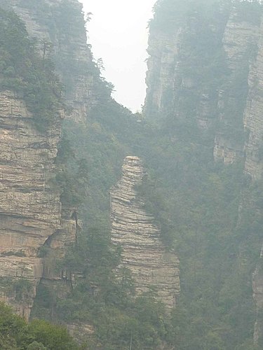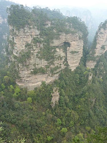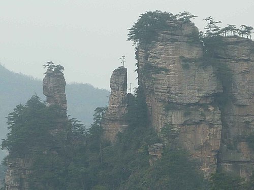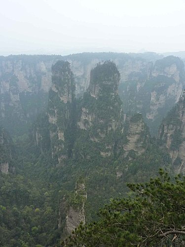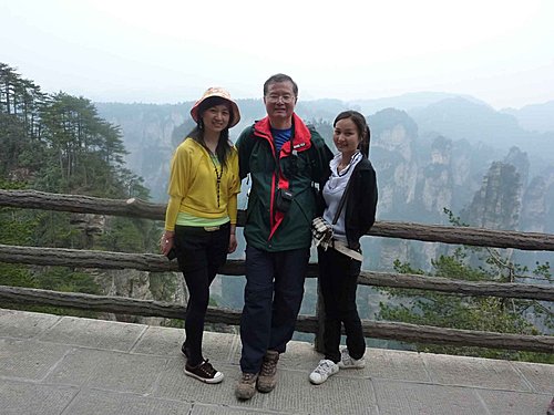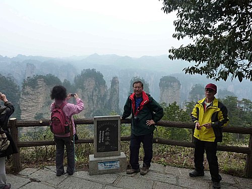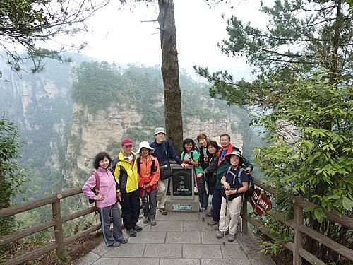 今天的旅遊重點是黃石寨。這裏號稱張家界美景最為集中的地方,也是張家界最大的淩空觀景台,被評價為「五步稱奇,七步叫絕;十步之外,目瞪口呆。不到黃石寨枉到張家界」。雖然網路上也有人對此評語,認為言過其詞,但印爸說重點在嚮導的帶路和介紹,跟他走就沒錯了。上黃石寨可搭纜車和走路兩種選擇,背包客當然用走的。這下有些團員又要皺眉頭了,哈哈 誰叫她們不問清楚硬要跟來。