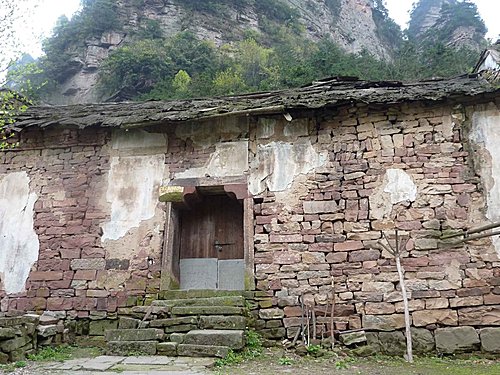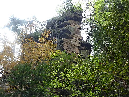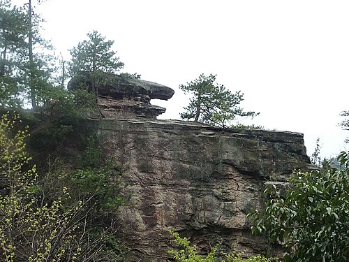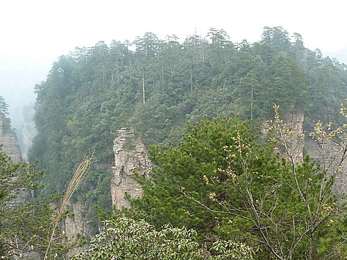 位於黃獅寨東北,是保存完整的原始次生林。拔地而起高300多米的巨大山峰,四面絕壁,頂部面積約4公頃,上面長著黑黝黝一大片武陵松。林內的樹木具有"古、大、珍、奇、多"的特色。武陵松(又名岩松),可能沒有黃山松那麼出名,但其特色卻絲毫不遜黃山松,堪稱張家界一絕。有人說:“桂林醉人是灕江清,峨眉風流是金頂雲,華山險在倚天看,廬山美在泉中聽,不及湘西武陵源,數千奇峰纏綠雲,石上長森林。”“石上長森林”說的就是武陵松。她“千年長不大,萬年長不老”,長在絕頂之上或絕壁之中,不論風吹雨打,嚴寒酷暑,總是精神煥發,一看見這瘦小而蒼勁的武陵松,就不由讓人頓生對生命的敬意。