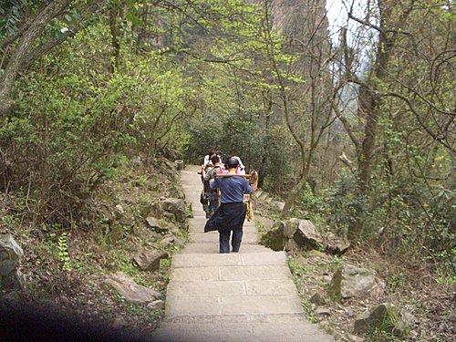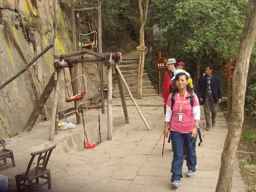 這位小姐應該也是搭滑竿的,竟然用走的,