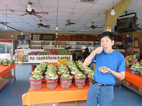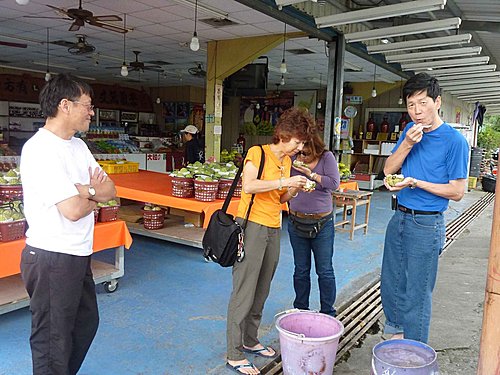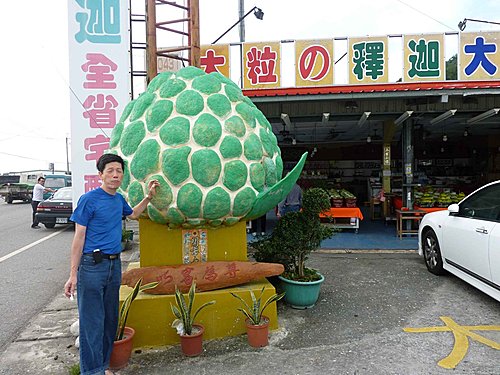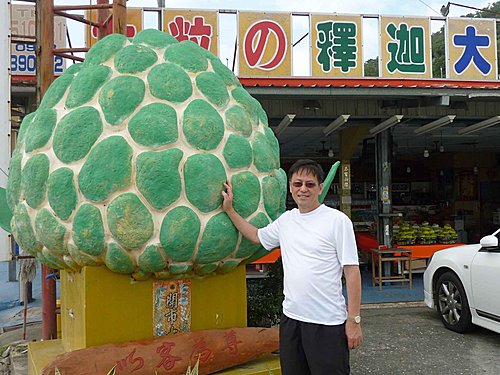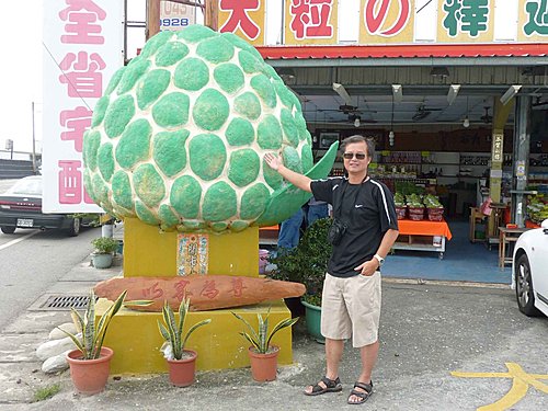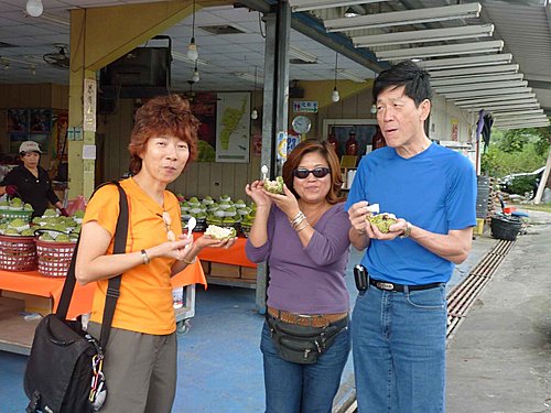 輝哥喜歡吃釋迦,昨晚在知本就一直唸著,今天一到太麻里,看到賣釋迦的商店,就破不急待的下車大吃。