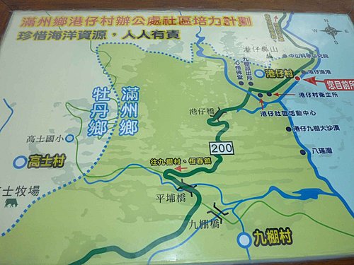 走旭海這條路,中午來到滿州鄉,在這裡用餐,餐後買了冰棒在大榕樹下休息.上次我騎腳踏車也是在這樹下休息.