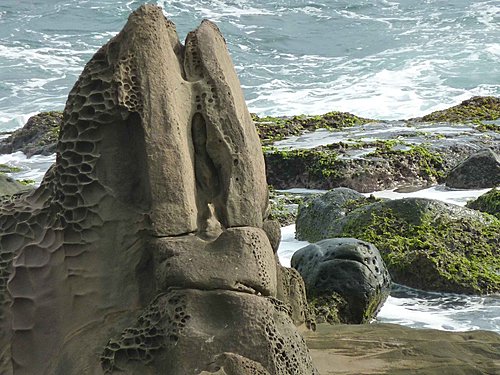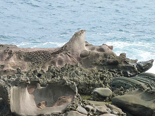 沿途長達2.5公里皆為鬼斧神工的海蝕岩,蜂巢岩、壺穴、棋盤石、海蝕平石等地形景觀豐富,海龜石、海蛙石、兔石、球石、方格石、棋盤石等特殊造型令人驚嘆連連。