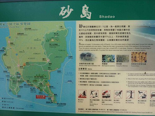 如今為了保護這片世界級的沙灘,目前已經現制措施,遊客只能遠觀,不能下去玩沙弄潮了哦。墾管處也在這裡設立保護區,並有一座「貝殼砂展示館」,並介紹砂島沙灘中珍貴的單細胞有孔蟲…等珍貴資源,也有一個觸摸區,讓不能下去沙灘的遊客也可以欣賞美麗的貝殼砂。