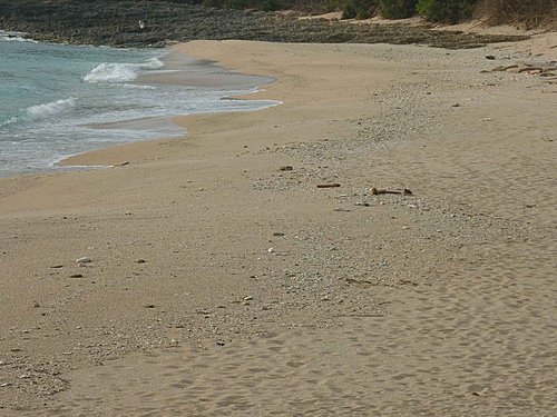 是墾丁最純淨的貝殼沙灘,沙灘的碳酸鈣含量達97.6%,以前遊客就常把沙子一包一包的帶走,甚至被卡車大量的偷運出去販賣,破壞非常嚴重。