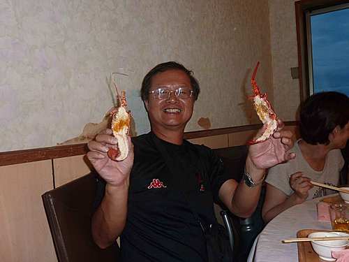 晚上請大家到鹽寮055品嚐著名的龍蝦大餐