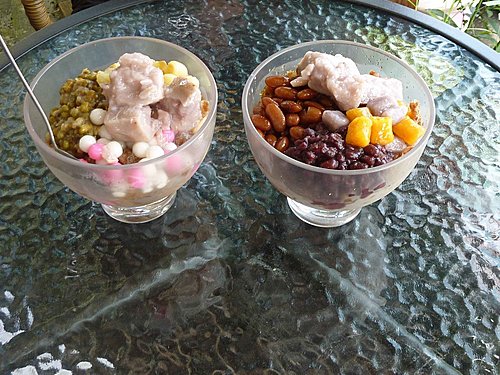 黑糖ㄔㄨㄚˋ冰,一碗45元.料多又好吃.在溫哥華一碗要150元