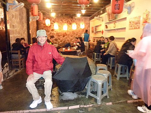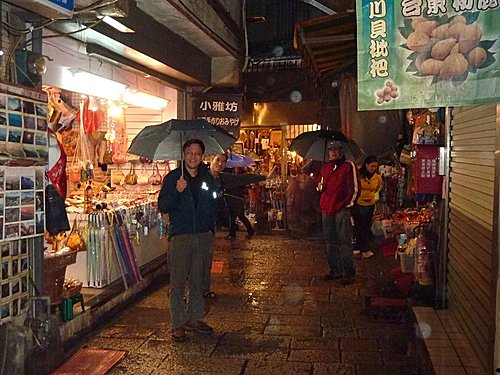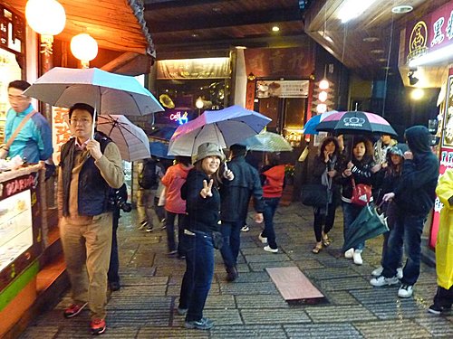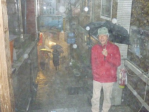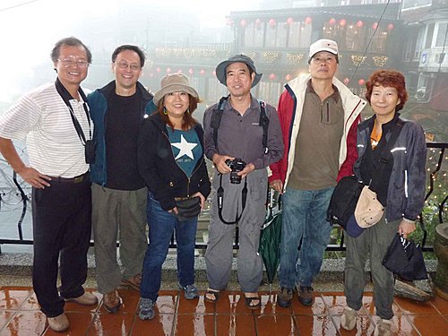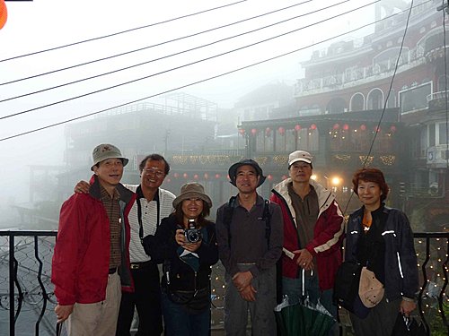 九份因地形關係多雨每次來時都下雨,今日也不例外。美雲臨時因公無法請假開車,只好和漢田兄約在瑞芳火車站搭公車上山,老邱開車載黃姐他們直接上山。(九份每到假日人山人海,停車不便。在瑞芳搭公車上去,又快又便宜) 。
