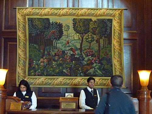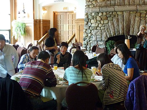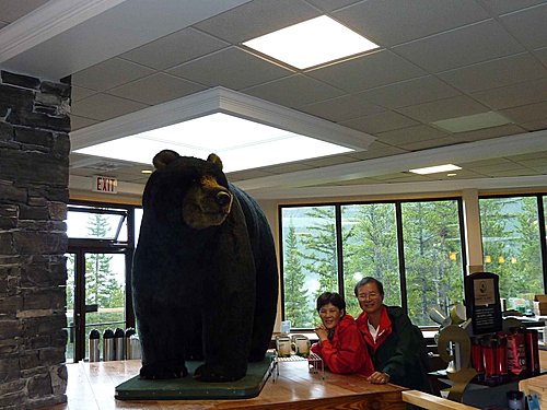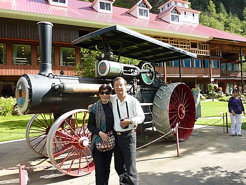 昨天的一陣雨打亂了今天的行程,本來有半天充裕的時間到露易絲湖,變成要先趕到硫磺山。一早匆匆吃完飯店的自助早餐後,就趕往硫磺山。車子剛開動,導遊說了一句不要忘了自己充電的電器用品,讓我想到放在床腳充電的電池沒收,趕忙請司機停車,迅速跑回飯店拿充電機。唉!時間已經不夠,還讓大家等,心理真是嘔死了。還好這兩天和團員相處的不錯,大家沒有很在意,只是被老婆大人唸了一下而已。