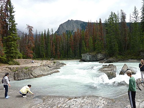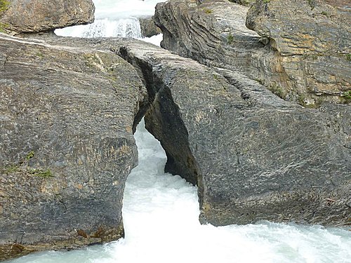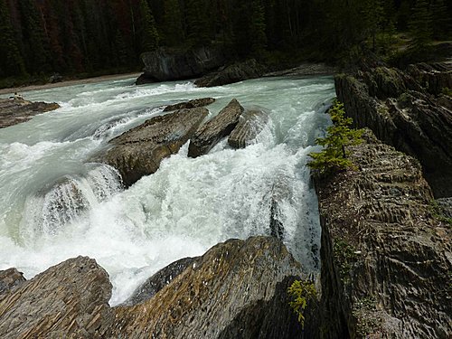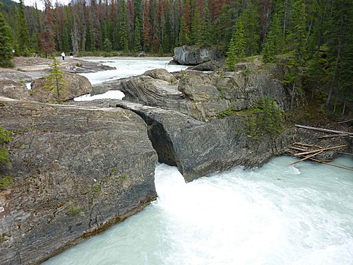 天然石橋位於優鶴國家公園境內,距菲爾德鎮(Field)以西約3公里處,到翡翠湖途中, 原來是一座瀑布, 因湍急的水流沖刷其中的縫隙逐漸擴大,形成橫跨瀑布的一段天然橋樑。(優鶴國家公園是加拿大的第2個國家公園,優鶴(Yoho)一語源自原住民,意思是「敬畏」與「驚嘆」)。