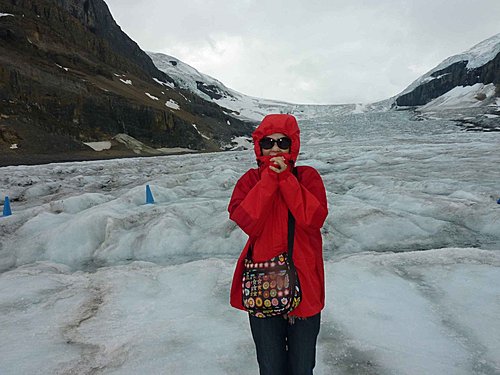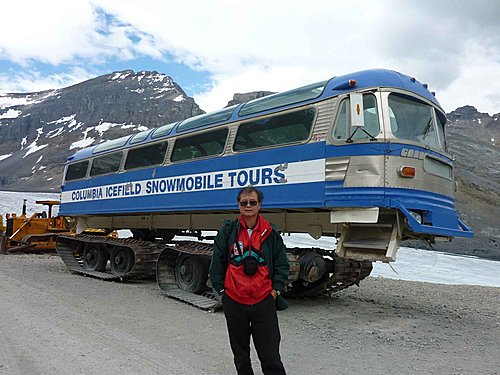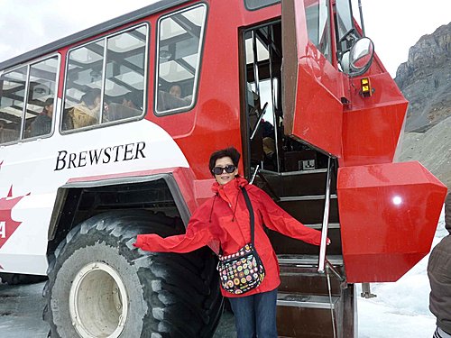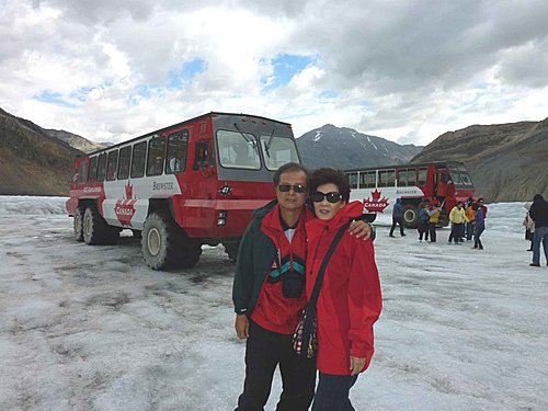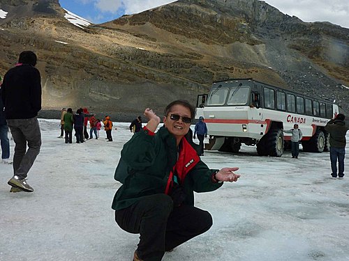 今日行程漸漸進入洛磯山脈的精華,第一站先來到哥倫比亞冰原。我們坐上特制雪車直奔冰原。當走進這白雪皚皚的極地,若非自己身歷其境,實在很難想像這個大冰原的壯麗。親吻著冰雪,仰望著藍天,用心靈接納大自然的贈與,這時人與自然才真正溶為一體,你才會驚呀於冰原的宏大壯闊,氣勢磅礴。