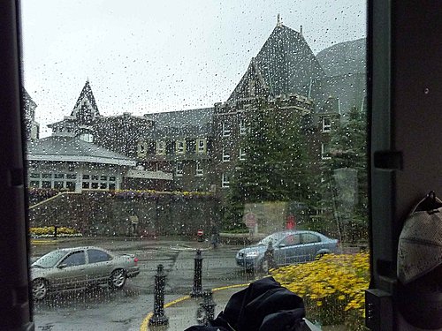 雨下不停,無法去菲爾夢班夫溫泉旅館( Fairmont Banff Springs )