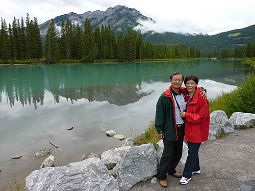 來到班芙雨竟然停了,將行李安頓好後,就和敏漫遊班芙。只見這座小鎮群山環繞,林帶如墨,河水碧透,景色清幽…讓人心曠神怡。今晚開了輝哥送的紅酒,好好慶祝二度蜜月。