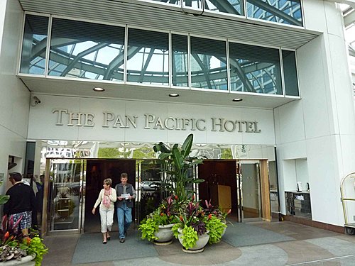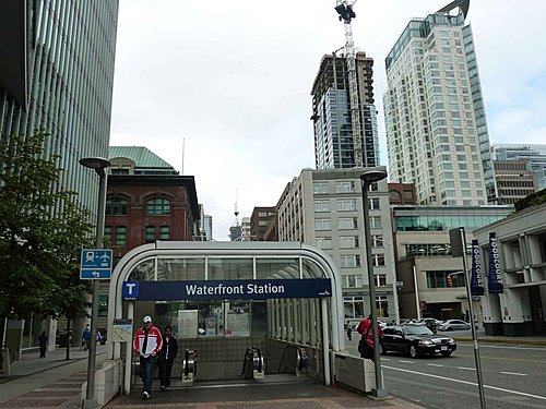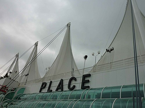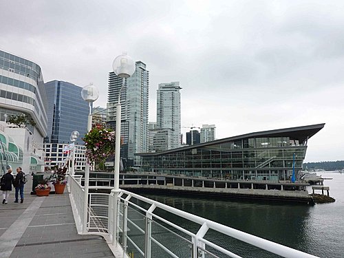 加拿大廣埸的「五帆船」位在河濱區中心。以延伸至內港的巨大白色五帆造型著名,是溫哥華極負盛名的地標之一。在86年的世博會後Canada Place更成為郵輪碼頭區,夏季的Vancouver是阿拉斯加遊輪的主要航程起點,廣場內還有星際電影院(CN IMAX Theatre)、碼頭購物中心(Waterfront Centre Shops)... 每年吸引來自世界各地幾百萬的觀光客,