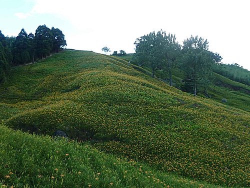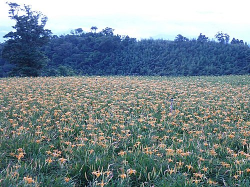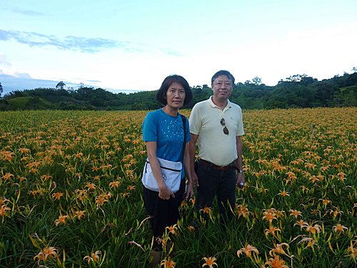 在山上看到滿山滿谷的金針花,大家不停的拍攝美麗花海,直到近黃昏,才依依不捨的下山。