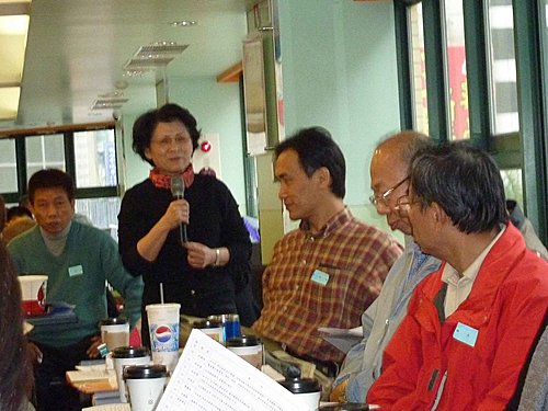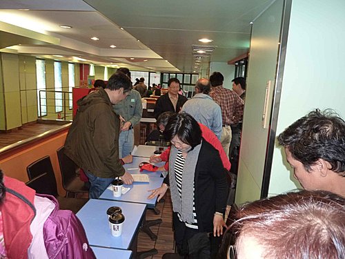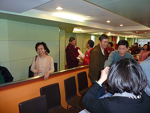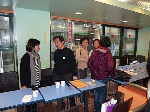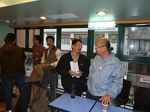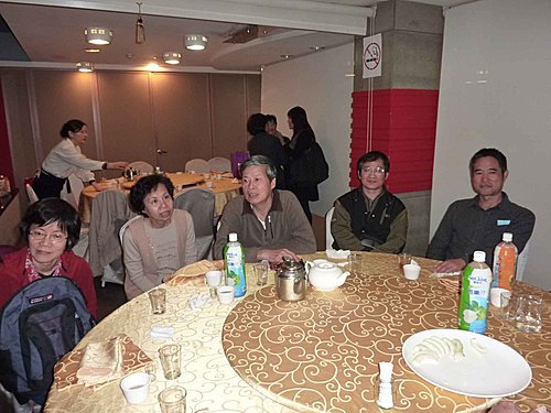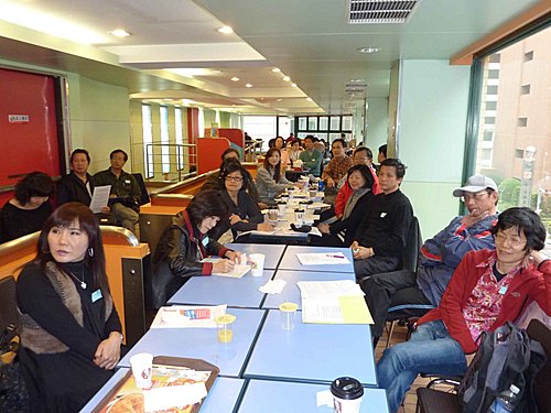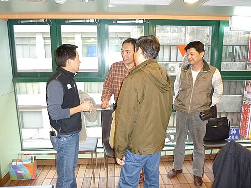 26日搭10:45太魯閣號北上,利用坐車時間再將資料看一遍.12:50到達台北,下車走到肯德基約13:20了.上樓和服務員確認場地後,點了一份餐先解決午餐,不久老邱.國.輝哥.傳夫婦也到了,老友重逢真是無限欣喜,簡單寒喧後,大家也很有默契的分頭佈置會場.