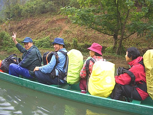 搭船到花山崖壁畫每人要80元,有一個方法可省一點.從售票口右邊,有一條小路往觀音寺方向一直走進去,約15分鐘左右,左邊有一農家餐廳,撘竹筏每人只要40元,可在這裡用餐,經濟實惠.回程也可撘他們的車出去,我們議價是1車40元(坐8人).