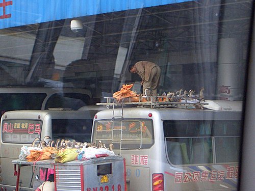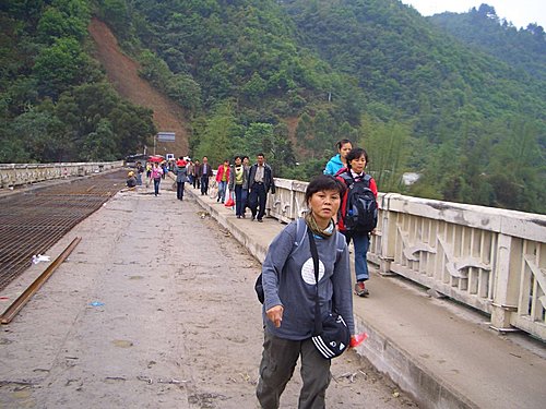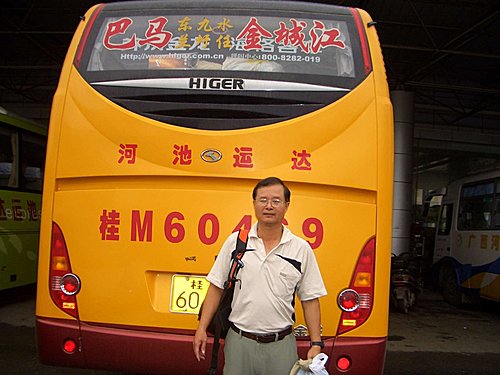 4月10日搭車 金城(河池市) – 融水 (車程3.6小時車費38元)路況不佳,一路顛簸,但是想到馬上有苗妹跳舞迎接,獻上迎賓酒,這點苦算甚麼.好不容易到達融水,感覺怎麼冷冷清清不像有節慶的樣子,下車在車站問了當地人,也說沒聽過姊妹節,心想是不是網路上亂寫,在車站旁找了一家飯店,將行李放下,順便問飯店服務人員,也是無人知道.黃兄打電話到當地旅遊局詢問,也說沒有,不過可以安排類似姊妹節的節目,每人收費150元.大家討論後拒絕了這個安排,決定直接上苗寨私闖苗家姊妹節.在車站問了到苗寨的車後就上車出發,往苗寨的公交車小又髒, 人.雞. 鴨.雜物同處一車,車上雜味撲鼻,加上山路彎來彎去,沿路就聽到雞啼鴨叫和人的嘔吐聲,從這一趟車程中,我對於本團體背包客真的是欽佩到五體投地,每人泰若自然,沒人暈車嘔吐.車子開了1.5小時好不容易到達苗寨,下車到一所學校問老師,他解釋說,姊妹節要事先安排,換句話說只要有錢,天天都是姊妹節,這下滿懷心願落空,不但沒看到苗妹連苗媽都沒看到,心理開始後悔沒聽葉兄的話到柳州去.天空下著細雨,心理淌著失望,此時又沒班車,只好雨中漫步往山下走,途中看見一間傳統苗屋進去借廁所順便聊姊妹節,他們說還是有這節慶只是各地時間不一樣,今天搭了6個多鐘頭的車,繞的暈頭轉向實在不值得啊!(如有同好想參觀姊妹節不要上當啊! )