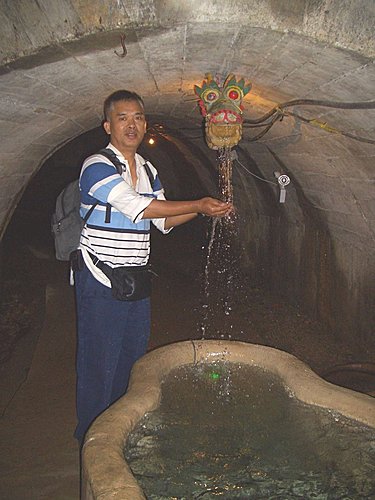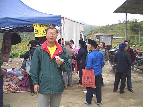 今早5點多感覺肚子怪怪的,終於拉肚子了.吃了一包止瀉藥後,回床繼續睡到7點.昨天聽賓館老闆說;今早有中越趕集市場,因此盥洗後就去市場湊熱鬧.沿路東看西看覺得沒有特色,衛生也不是很好,因此不敢亂吃.途中看到團員們都已逛完準備回賓館了,因此找了一家看來乾淨的店吃早餐,小龍包豆漿共3.5元.回旅館途中,順路走到碩龍地下長城參觀(中越戰爭時的地下道).門票竟要90元,難怪門可羅雀,連售票員都不在,本想溜進去看看,但怕一進去售票員可能馬上就出現了,因此拍照留念後就回賓館.