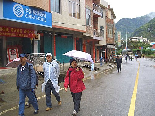 往碩龍車程約1.2小時,到達時突然下起大雨,大家躲到道路旁涼亭下,有一位小摩的車師傅一直跟著,並說我們要住的那家賓館老闆要他來接我們不用付車費,大家心想都還沒決定要住那一家飯店,怎麼可能會有飯店老闆派車來接,因此不想搭理他.他也不氣餒,在等雨的十幾分鐘裏,不停的介紹附近旅點及民風,耐心的尋求機會,令人看了實在不忍.等到雨稍停時,大家決定只租他的車放行李,兩人隨車到飯店,其餘的人安步當車,輕裝走到飯店,唉!要當背包客不是那麼容易吧.